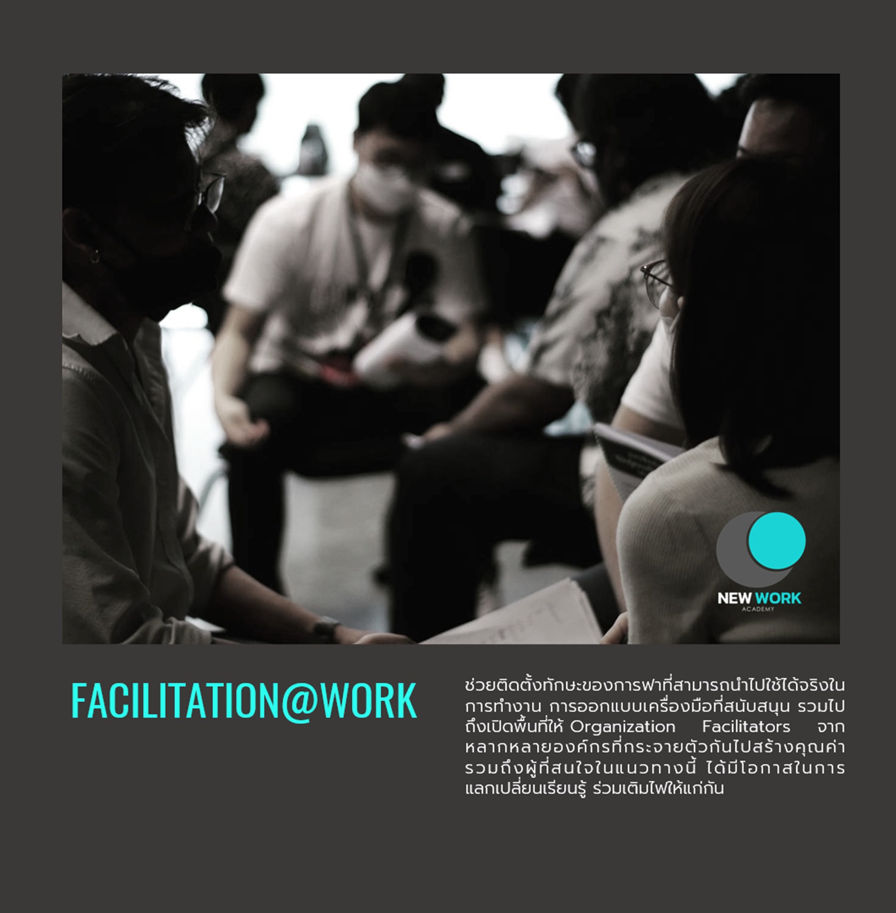 New work academy คือการรวมตัวกันของกลุ่มพันธมิตรจากหลากหลายอาชีพ หลากหลายความเชี่ยวชาญ ทั้งผู้นำ ผู้บริหารองค์กร ที่ปรึกษา facilitators และผู้ทำงานด้านสื่อสร้างสรรค์ ที่มีความฝัน และความเชื่อคล้ายคลึงกัน คือการสนับสนุนผู้คนในองค์กรที่กำลังมองหาวิถีการทำงานร่วมกันที่สนุก สร้างสรรค์ มีแรงบันดาลใจ ให้พวกเขามีเครื่องไม้เครื่องมือ ทักษะ และเครือข่ายที่จะช่วยให้ฝันของพวกเขาเป็นจริงได้ง่ายขึ้น เราทดลองวิถีการทำงานเช่นนี้ในทีมของพวกเราเอง และทำงานร่วมกับองค์กร เพื่อค้นหาจุดที่งานของพวกเราสามารถเข้าไปเติมเต็ม ส่งเสริมให้องค์กรเหล่านั้นสามารถสร้างฝันโดยพึ่งพาตัวเองให้ได้มากที่สุด
